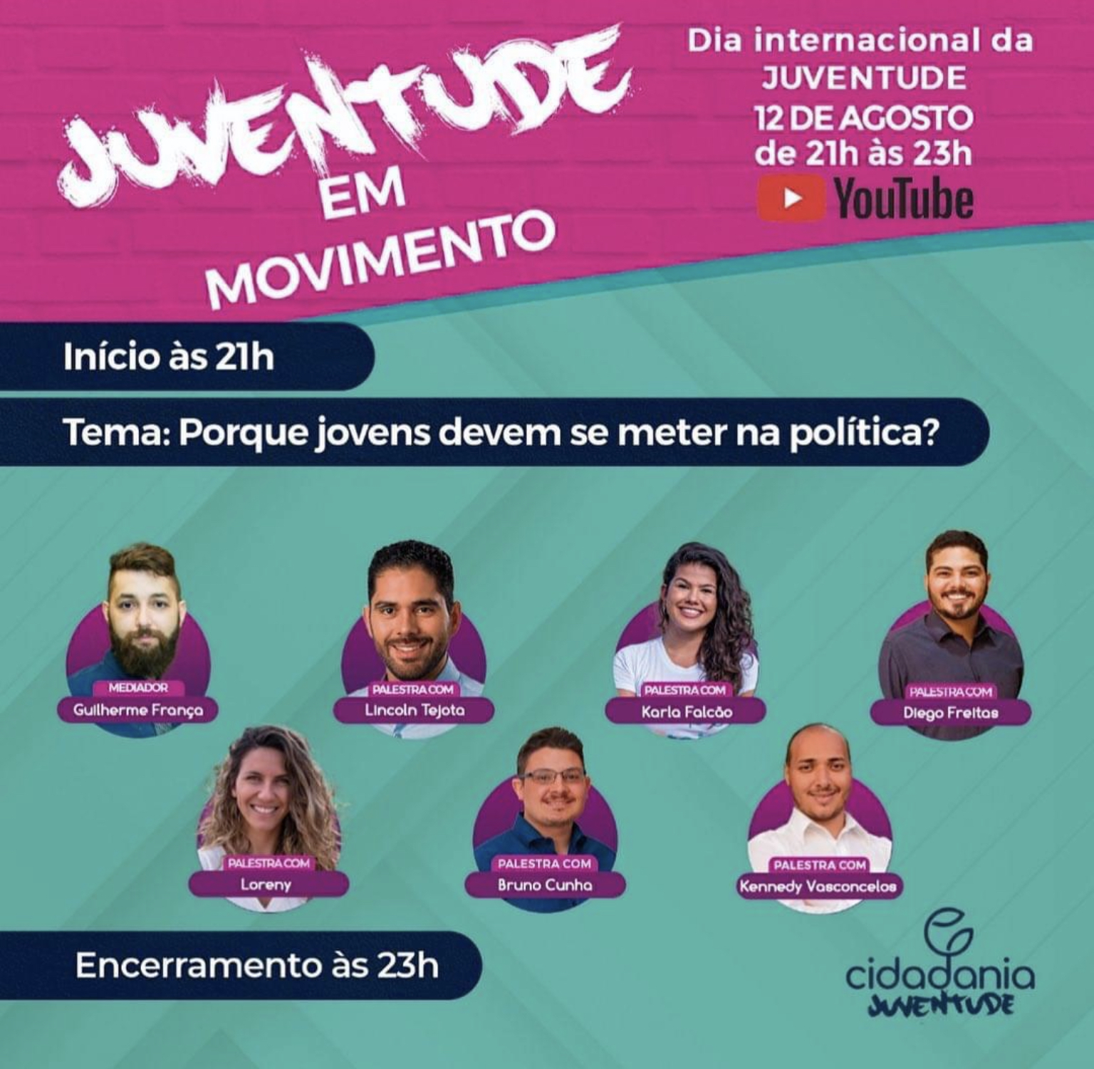 Com um expoente de cada região do país, o evento virtual propõe o debate em torno da participação do jovem na esfera das decisões políticas e em como as ideias dos jovens podem influenciar no modo de fazer a política no país.