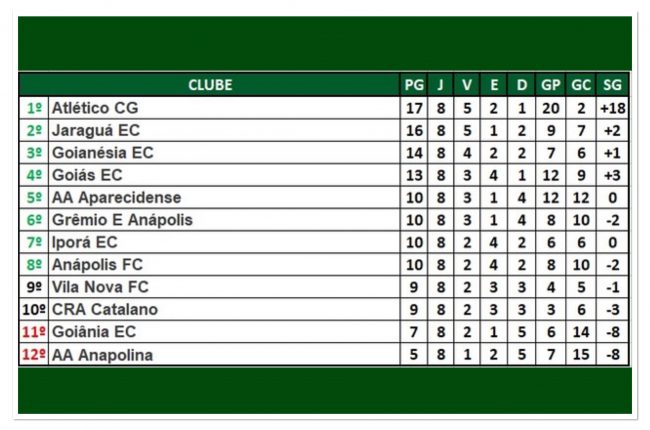 Concluída a 2ª Rodada do 2º Turno da 1ª Fase do Goianão 2020, os quatro primeiros colocados continuam com uma certa folga, muito embora, nesta rodada, apenas o Atlético venceu, aplicando mais uma goleada em confronto direto diante do Jaraguá, voltando à liderança. O Goianésia sofreu virada em casa para o até então lanterna Goiânia e o Goiás ficou no empate no clássico diante do Vila Nova. Os dois últimos colocados, Goiânia e Anapolina, trocaram de posição, com o alvi-negro passando a lanterna para a equipe rubra Anapolina, mas continuando na terrível faixa do rebaixamento. Então, os demais seis times, Aparecidense, Grêmio Anápolis, Iporá, Anápolis, Vila Nova e Crac correm atrás das teoricamente quatro vagas restantes nas quatro rodadas finais desta 1ª Fase do Campeonato. A diferença do 5º e melhor colocado deste sexteto, Aparecidense, para o 10º e ante-penúltimo colocado, Crac, é de apenas e tão somente um ponto. Além da intensa e incrível briga, eles ainda alimentam uma tênue esperança de chegar entre os quatro primeiros colocados, mas todo cuidado será pouco quanto a fuga do rebaixamento. Classificação geral: